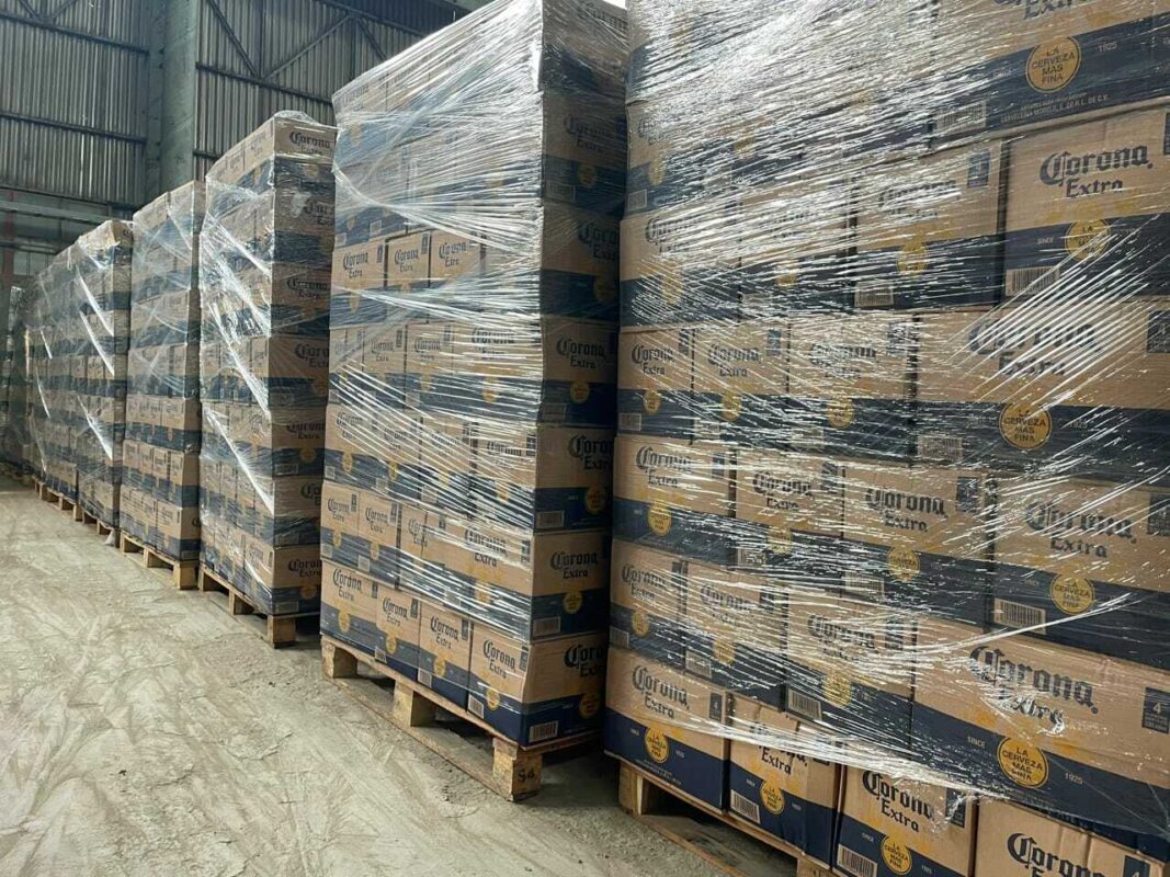 Corona Extra beer containers at UAE port ready for customs clearance and distribution