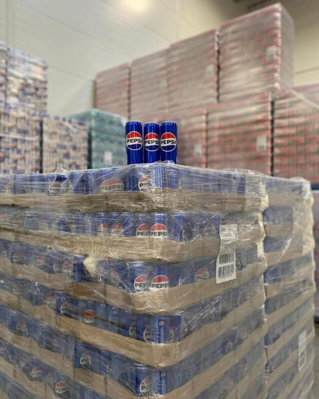 Pepsi cans wholesale format on export pallet